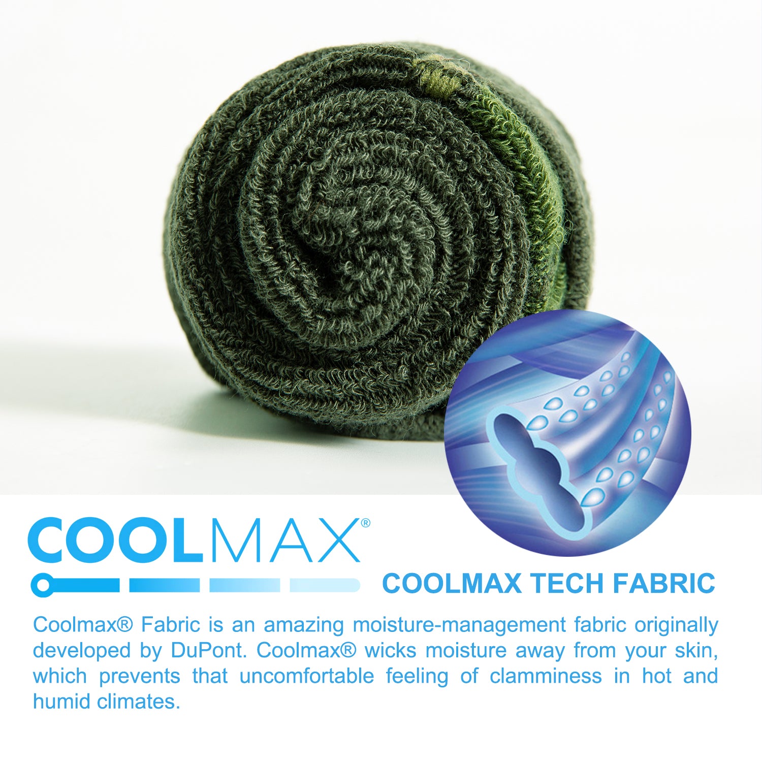 - Coolmax Quick-Dry Technology】 Engineered for performance, these Tactical Boot Socks feature advanced Coolmax fibers that wick moisture away from the skin, keeping your feet dry and comfortable during intense outdoor activities like hiking, rucking, or military training.